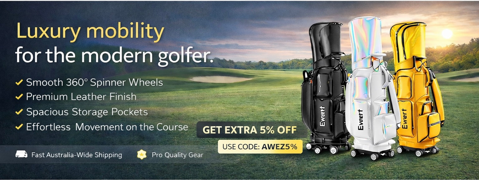Navigate the green effortlessly with the Everfit rolling golf cart bag. This premium synthetic leather buggy club organiser features a spinner wheel base, telescopic handle, and built-in cooler pocket. Complete...